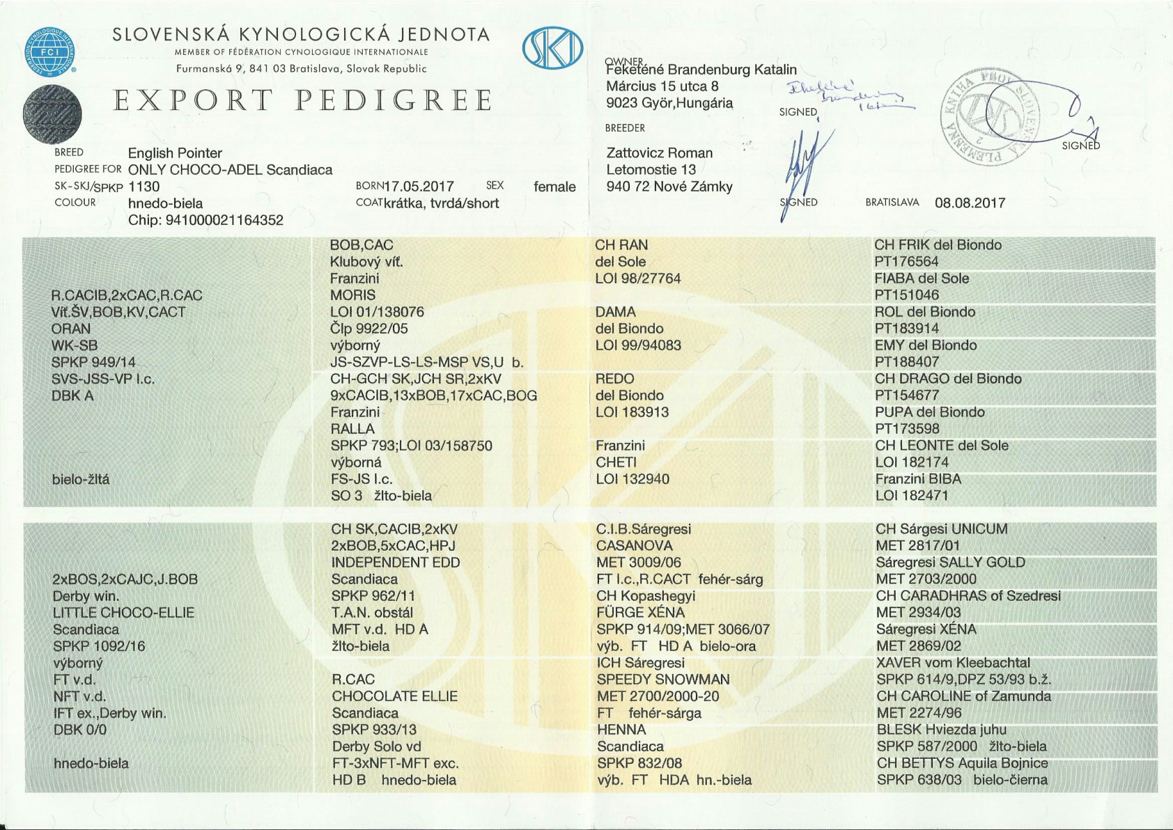 Tenyésztője: Zattovicz Roman / Szlovákia
